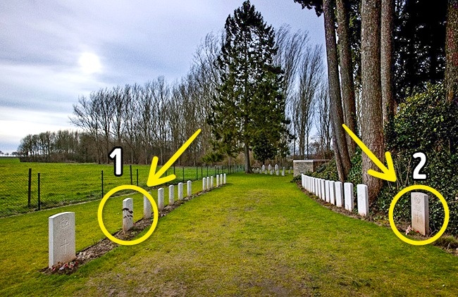 John Parr, primul soldat britanic ucis în Primul Război Mondial și George Ellison, ultimul, au fost înmormântați în același cimitir, iar mormintele lor se află față în față, în două șiruri paralele.