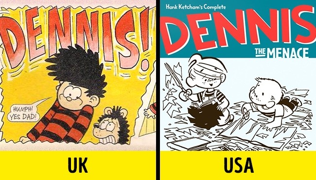 La 17 martie 1951, niște artiști din Statele Unite și Regatul Unit au lansat benzile desenate Dennis the Menace, fără să știe unul de altul. Pentru a evita confuziile, versiunea britanică a început să se vândă sub numele Denis and Gnasher. În prezent apar în continuare numere din ambele benzi desenate.