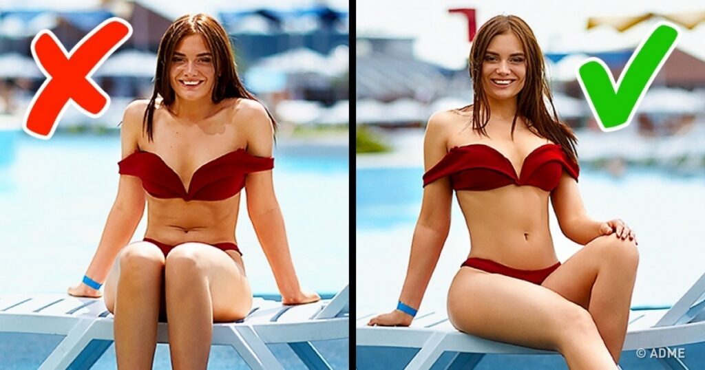 Din cauza posturii nepotrivite, în poză o să ai burtă, iar gâtul o să îți dispară. Nu sta aplecată. Ca să pari mai elegantă, e suficient să-ți îndrepți spatele. Asta e valabil tot timpul, nu numai la ședințele foto.