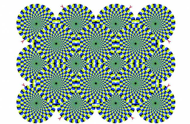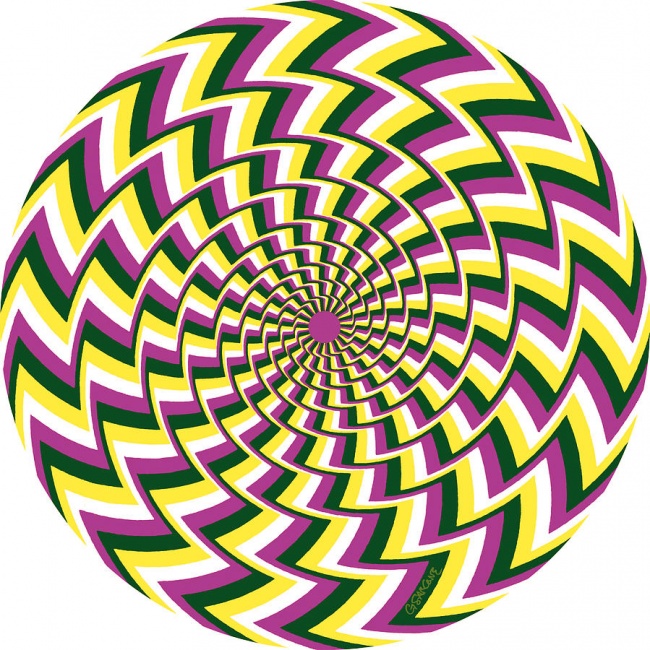 Anumite contraste de culori și forme înfățișate în această imagine statică fac să pară că ea se mișcă.