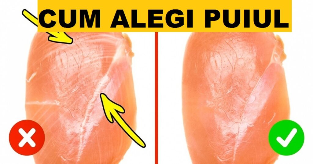 Fii atent la fibrele albe și la stratul de grăsime prea mare. Acesta e un indiciu că pasărea a fost hrănită cu aditivi hormonali ca să crească repede. Acest tip de carne nu este foarte sănătos. Contează și culoarea. Dacă puiul e galben, atunci carnea nu e proaspătă. Carnea de pui trebuie să fie roz și fermă.