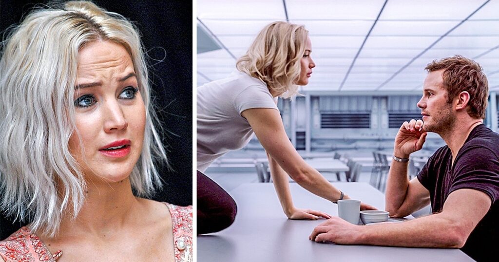 Actriţa a mărturisit că n-a fost foarte încântată atunci când s-a filmat scena de dragoste din filmul Passangers. Lawrence a fost îngrijorată pentru că a fost prima dată când s-a dezbrăcat în faţa camerelor, iar soţul ei Chris Patt a adăugat şi mai multă presiune situaţiei. După ce s-a filmat scena, Lawrence s-a întors acasă şi singurele ei griji au fost că a sărutat un bărbat căsătorit şi avea un gol foarte mare în stomac.