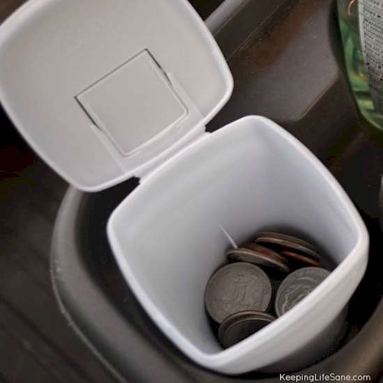 E dificil să ai un coș de gunoi adevărat în mașină și nici pungile de plastic nu sunt prea convenabile. Poți folosi un recipient pentru cereale – e destul de încăpător și nu ocupă spațiu.