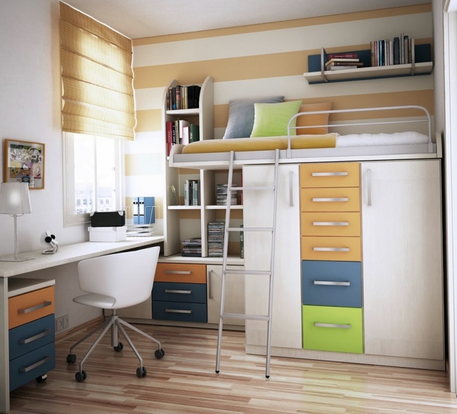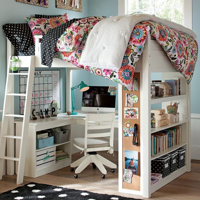2. Trei în unu – pat, bibliotecă și spațiu de lucru