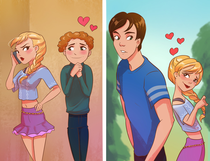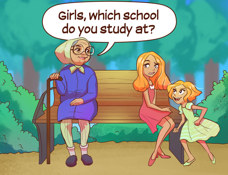 De exemplu, când toată lumea crede că iubitul ei este mult mai în vârstă decât ea, chiar dacă au aceeași vârstă.