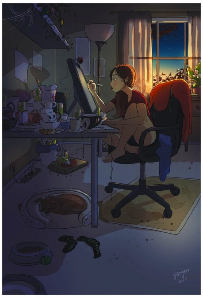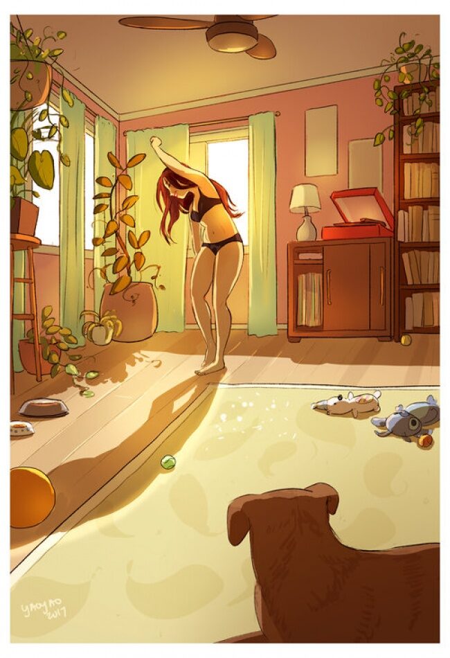 Iată câteva dintre lucrările ilustratorului Yaoyao Ma Van As, care înfățișează farmecul vieții pe cont propriu: