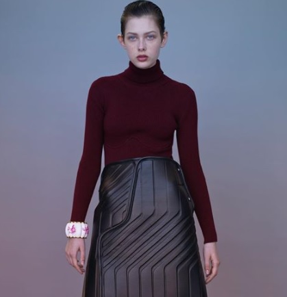 Designerii de la brandul Balenciaga au fost destul de inspirați și au scos pe piață o fustă din covoraș de cauciuc folosit pentru mașini.