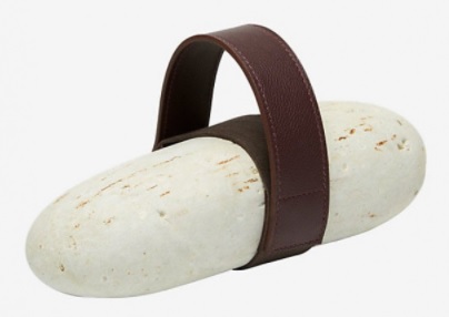 Casa de modă franceză Hermes a lansat o greutate din hârtie sub forma unei pietre netede, în valoare de 725 de euro. Designerii susțin că fiecare pietricică folosită este unică, iar cureaua atașată este din piele de vițel.