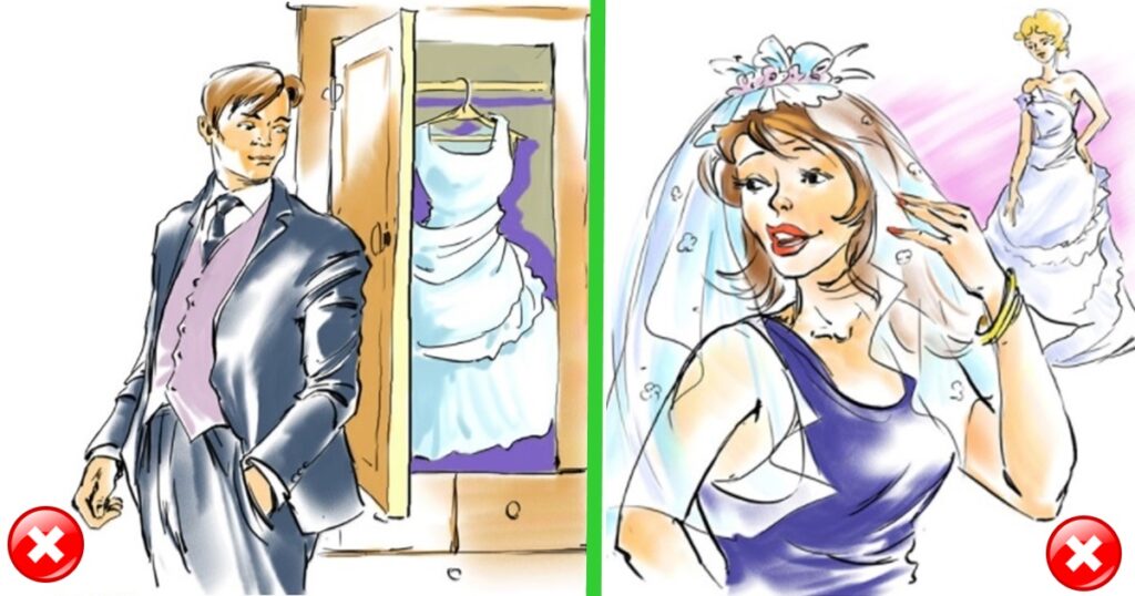 11. Mireasa nu ar trebui să probeze rochia și voalul în același timp. Ca să fie fericită, ar trebui să împrumute voalul altei femei.