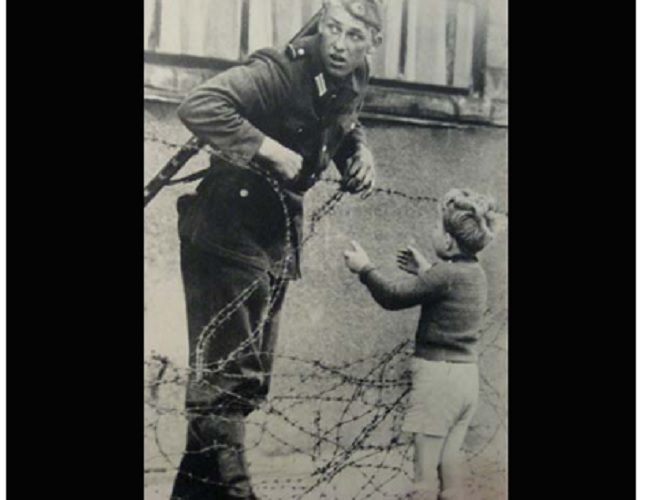 În această fotografie, un copil este salvat de un soldat german pentru că fusese despărțit de părinții săi. Asta era ceva interzis, dar soldatului i s-a făcut milă.