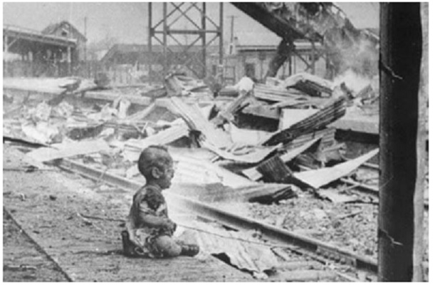 Acest copil a fost o victimă a celui de-al doilea război Sino-Japonez, care a făcut parte mai apoi in Al Doilea Război Mondial. Adăpostul a fost distrus, dar copilul cumva a supraviețuit.