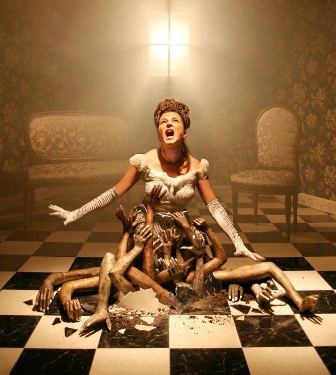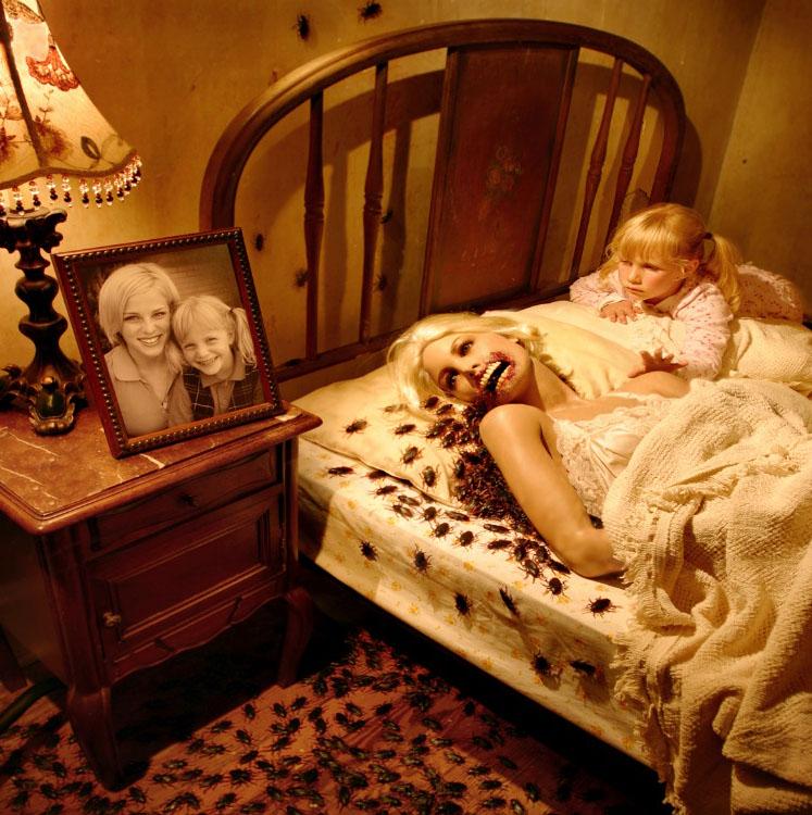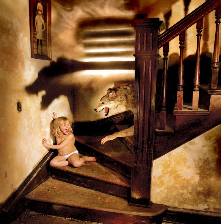 Fiecare om se naște cu niște temeri instinctuale, precum cea de întuneric sau cea de a fi mâncat de un monstru. Acestea scad în intensitate pe măsură ce înaintăm în vârstă. Fotograful american Joshua Hoffine e interesat de psihologia fricii și și-a pozat familia în câteva dintre ipostazele clasice care provoacă teamă. El spune că groaza, ca formă artistică, își trage seva din subconștient.
