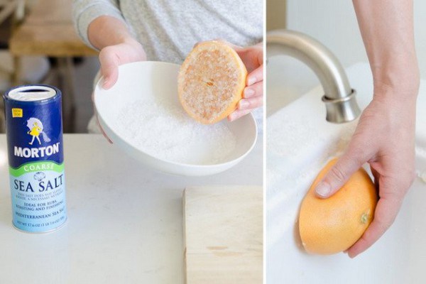 Pentru a curăța cada de baie ai nevoie de doar 2 ingrediente: sare de mare și grapefruit. Taie fructul în jumătate, pune sare pe suprafața acestuia și freacă cada. După aceea, clătește cu apă.