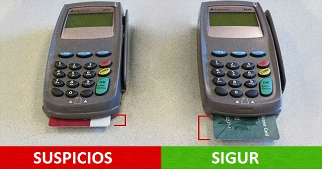 - când plătești cu cardul într-un magazin / restaurant, nu-i lăsa pe angajați să plece cu cardul. Totul trebuie să fie făcut în prezența ta.