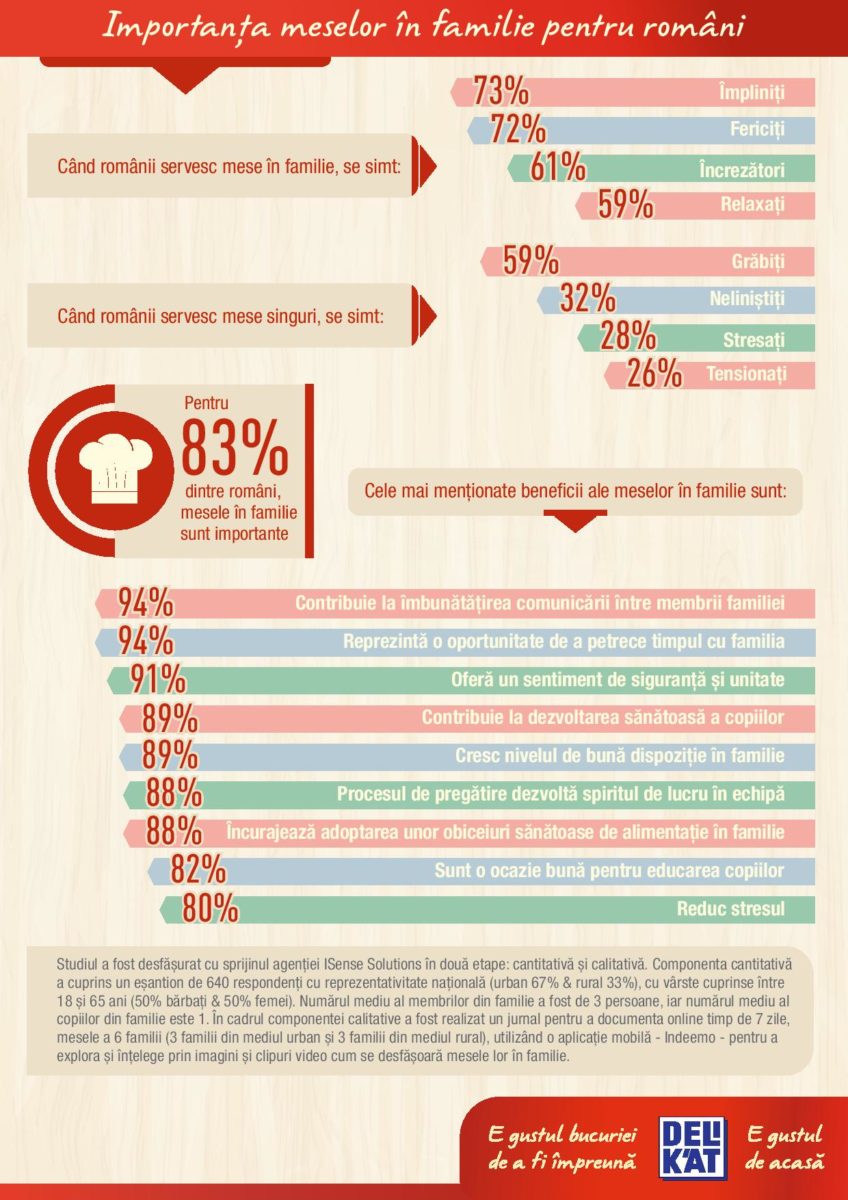 Un studiu făcut de Delikat, arată că 67% dintre români mai reușesc să ia mesele în familie, în fiecare zi. Dacă ar fi să răspunzi sincer la o întrebare, de câte ori reușești să strângi întreaga familie în jurul mesei?