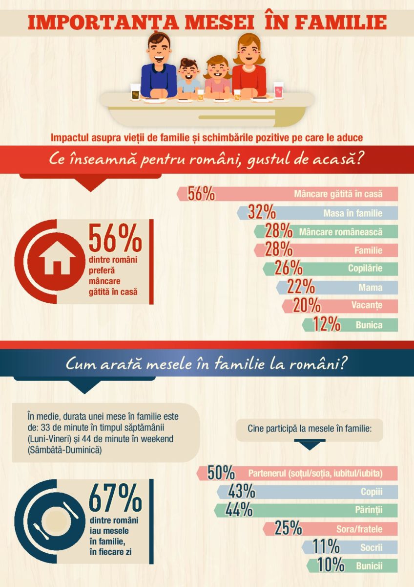 Un studiu făcut de Delikat, arată că 67% dintre români mai reușesc să ia mesele în familie, în fiecare zi. Dacă ar fi să răspunzi sincer la o întrebare, de câte ori reușești să strângi întreaga familie în jurul mesei?