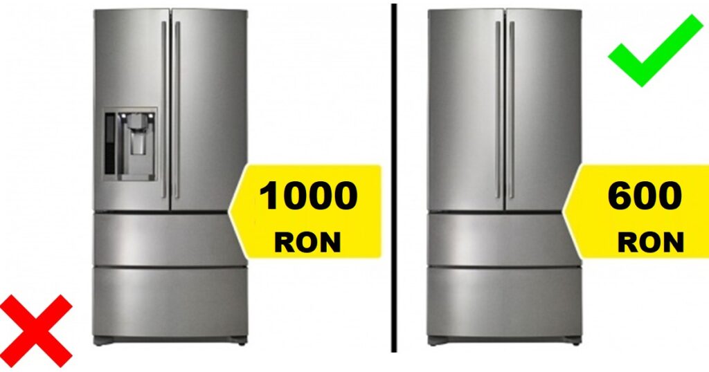 Generatorul de gheață – Frigiderele cu un generator de gheață costă mult mai mulți bani. Nu ar trebui să cheltuiești prea mulți bani pentru el deoarece poți să folosești mereu metoda clasică de a face gheață.