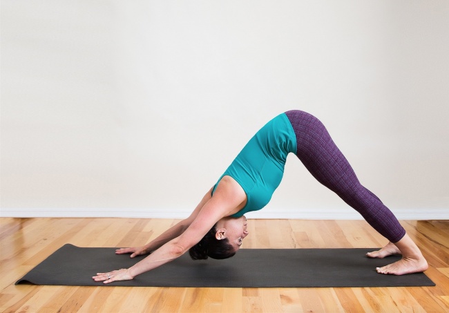 5. Dandasana. Stai pe o pătură cu picioarele întinse și presate de podea. Trebuie să formezi un unghi de 90 de grade între corp și picioare. Pune-ți mâinile pe lângă tine și împinge în podea. Asta te va ajuta să-ți îndrepți spatele.