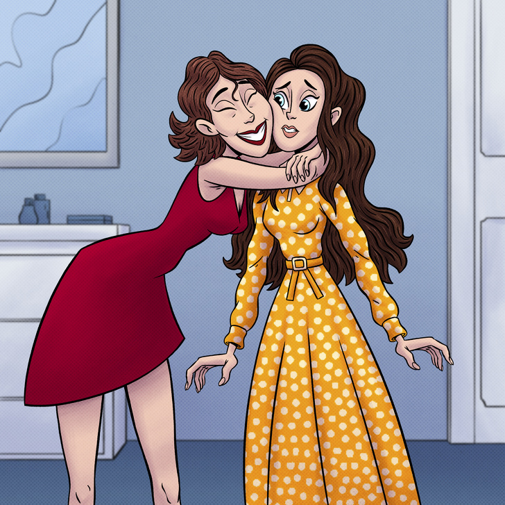 Acest caz este similar cu cel precedent, dar este un caz unilateral și implică o narcisistă. Fiecare este concentrată doar pe ea însăși și îi pasă mai mult de imaginea ei și de ceea ce gândesc oamenii, mai degrabă decât de relația reală sau de persoană. Încearcă să arate perfect din exterior, dar devalorizează mama / fiica ei în realitate.