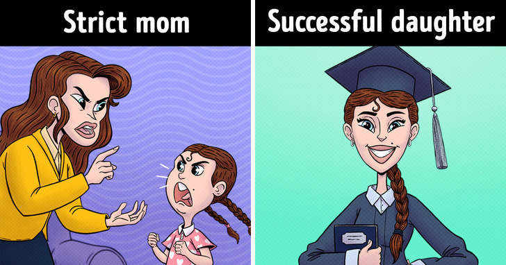 Cum o afectează pe fiică: Fetele crescute de aceste mame sunt adesea mai responsabile și devin lidere. Apreciază granițele dintre oameni. În același timp, s-ar putea simți neîncântate, neglijate emoțional și pot avea o frică de respingere.