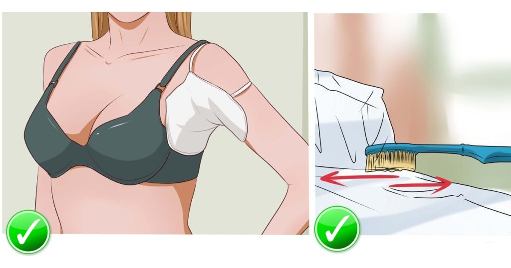 Pentru a scăpa de petele și mirosul de transpirație, înmoaie hainele în apă caldă sau rece. Folosește un recipient separate pentru a prepara o soluție dintr-o parte apă și trei părți bicarbnat de sodium. Amestecă până ajunge la consistența unei paste. Aplică un strat gros pe zona pătată. Freacă bine cu o periuță de dinți sau de unghii. Lasă pasta pe haine o oră sau, la nevoie, peste noapte. Spală apoi hainele în apă caldă. Repetă procedura dacă petele nu au ieșit.
