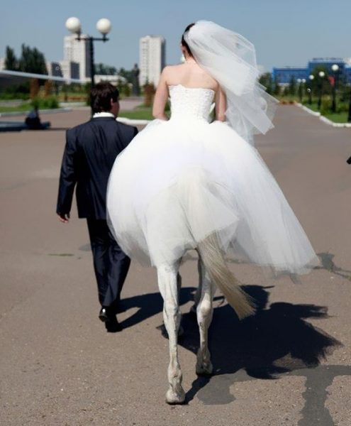 Deși mai mult ca sigur mirele nu a observat ce se întâmplă, toată lumea s-a amuzat de această imagine.