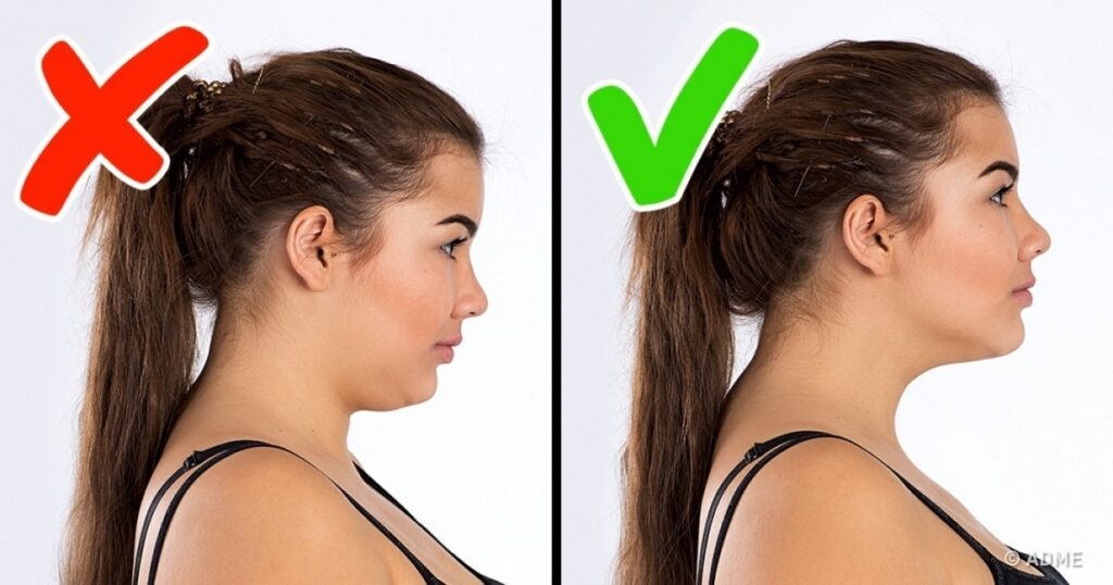 Orice fată poate să aibă bărbie dublă în fotografii, din cauza poziției greșite a capului. Pentru a scăpa de cea de-a doua bărbie, este suficient să îți împingi ușor capul înainte și să îți pui mijlocul limbii pe cerul gurii.