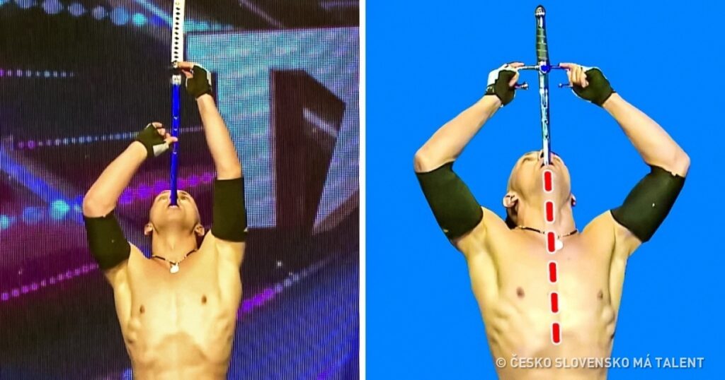 Acest truc spectaculos depinde în întregime de magician. Secretul- sabia trebuie să poată trece astfel încât organele interne ale magicianului să nu fie rănite. Faringele și esofagul trebuie să fie în linie dreaptă. Este nevoie de multe ore de antrenament pentru a putea face un astfel de truc periculos.