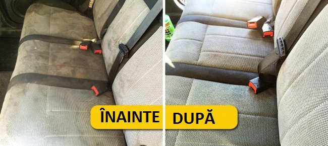 Se amestecă 1 lingură de sodă, 1/3 dintr-un pahar de oțet, apă caldă (dar nu fiartă) și 1 lingură de detergent. Amestecul funcționează perfect pentru îndepărtarea petelor de tapițerie.