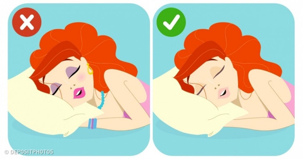 A dormi cu machiajul pe față duce la piele uscată, iritații și căderea genelor. Curăță-ți fața în fiecare seară și aplică produse de curățare, pentru a avea o piele sănătoasă și pentru a încetini procesul de îmbătrânire.