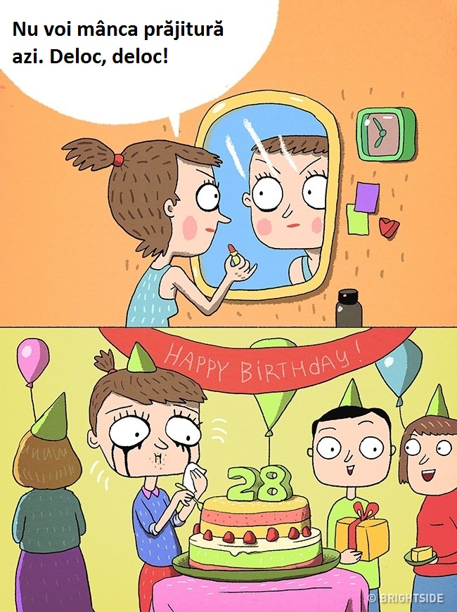 Dacă te simți vinovată când mănânci ceva sau vrei să te pedepsești pentru că mai consumi și ceva dulce, nu vei obține rezultatele dorite. Scapă de sentimentele negative, concentrează-te pe lucrurile pozitive și gândește-te la reușitele de până acum.
