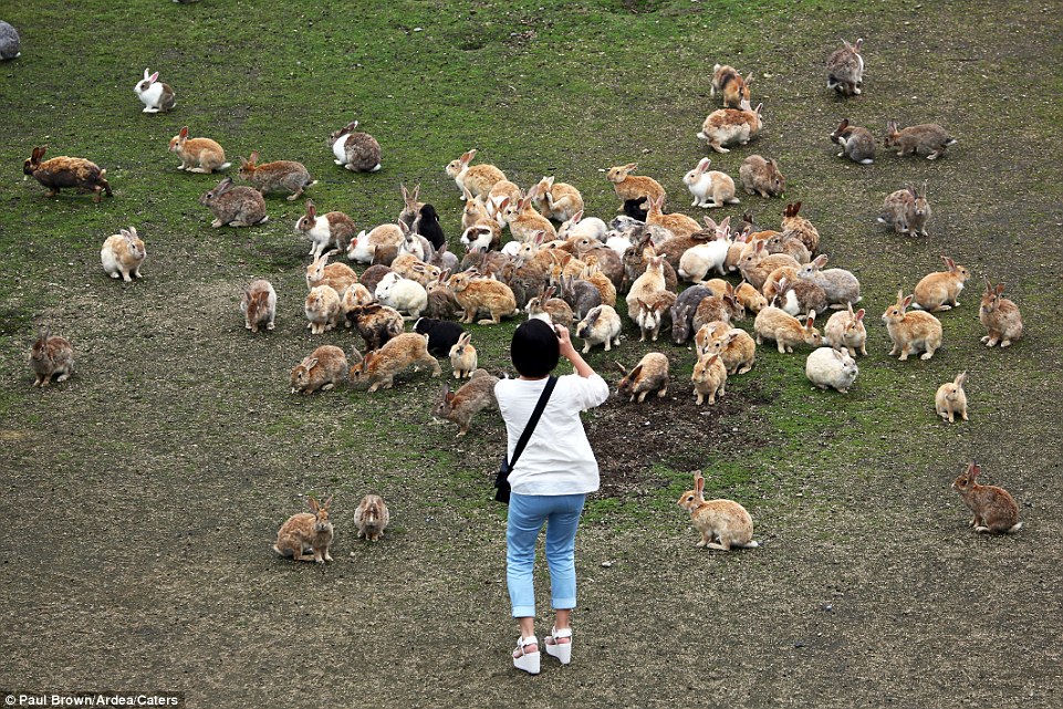 În timpul celui de-al Doilea Război Mondial, pe insula Okunoshima au fost aduși iepuri pentru scopuri științific. Când programul a fost închis, iepurii au fost eliberați. Nu au pierdut timpul, așa că azi mica insulă e plină de iepurași care atrag mii de turiști.