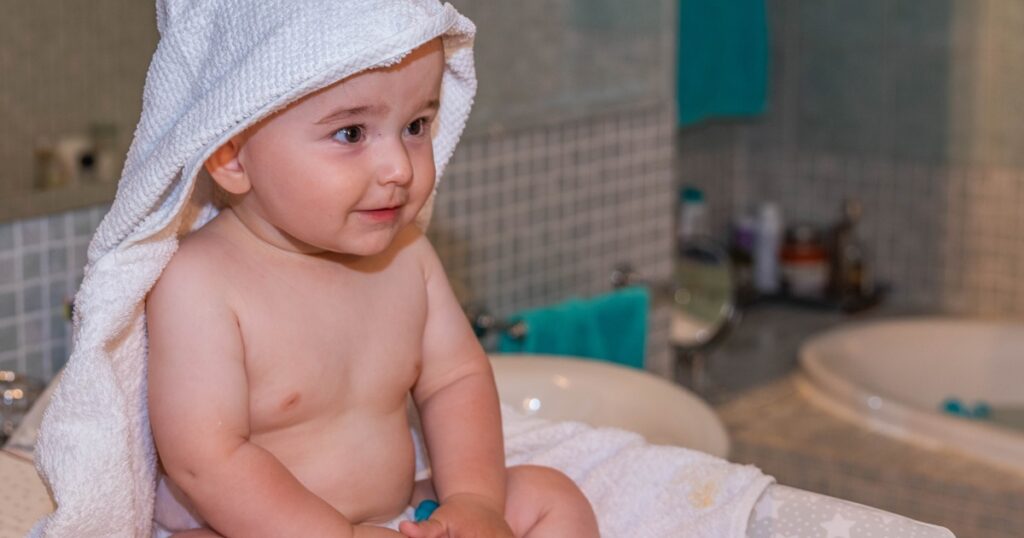 Facem băiță o dată, de două ori maxim, pe săptămână și încercăm să ne și jucăm sau să facem exerciții care îl ajută pe Nicholas să își dezvolte abilitățiile și sistemul muscular, nu doar să-l săpunim.