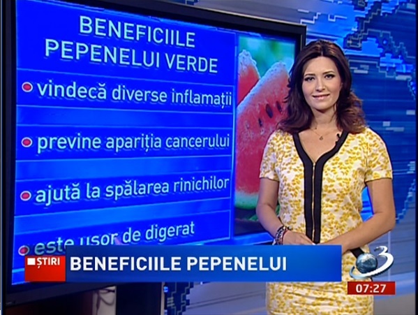 Unul dintre fructele vedetă ale acestui sezon este fără îndoială pepenele verde. Îl găsim pe orice tarabă sau în magazine, la un preţ accesibil. Dulce şi gustos, pepenele nu doar că ne răcoreşte în zilele caniculare, dar are şi foarte multe proprietăţi care ajută organismul în lupta cu diferite afecţiuni. De exemplu, este o veritabilă sursă de vitamine antioxidante A şi C. Datorită vitaminei A vederea este mult mai bună, iar Vitamina C ajută la hidratarea pielii, o tonifică şi îi oferă un aspect plăcut şi strălucitor.
