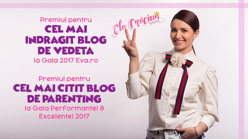 Săptămâna trecută acest proiect care m-a completat cu toul a fost premiat la două dintre cele mai prestigioase evenimente. Am obținut premiul pentru “Vedeta cu cel mai citit blog de parenting din România” în cadrul Galei Performanței și Excelenței 2017. La numai două zile distanță, în cadrul galei Eva.ro am plecat cu premiul pentru “Cel mai îndrăgit blog de vedetă”. Au fost unele dintre cele mai emoționante momente din viața mea pentru că am realizat că ceea ce fac este apreciat iar asta m-a copleșit incredibil de tare.