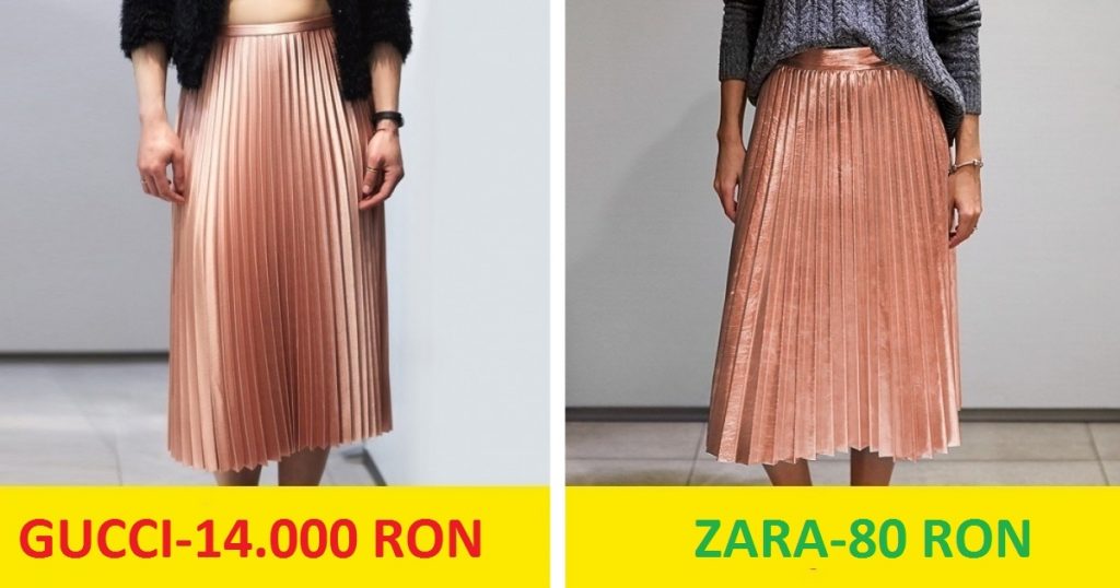 Poți găsi populara fustă plisată și în colecția Gucci, pentru 3,490$, dar și la Zara, pentru aproximativ 20$.