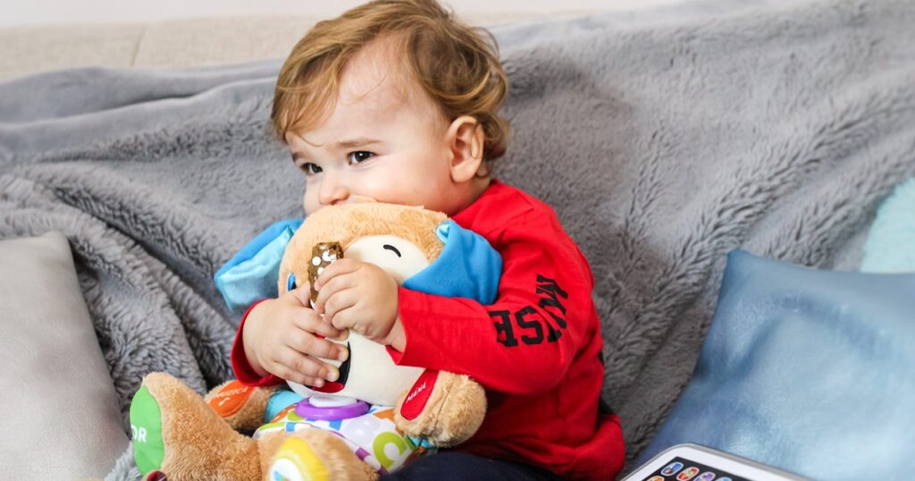 După 12 luni puteți să vă axați deja pe jucării de dezvoltare, cum sunt cele de la Fisher Price, care îi încurajează să repete ceea ce aud, le dezvolta vocabularul, le îmbogățesc înțelegerea relațiilor de tip efect-cauză, îi ajuta sa înțeleagă conexiunea dintre imagini și cuvinte și oferă cunoștințe primare, folosind teme familiare și obiecte pe care bebelușii le vad în fiecare zi. Nicholas a primit Cățelușul care răspunde la atingerile bebelușului cu fraze vesele și cântecele, se luminează și clipește în ritmul muzicii și o Tabletă educativă cu multe sunete și cântecele.