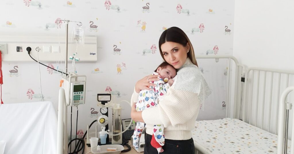 Bineînțeles că s-a impus spitalizarea. Prea mică, muci prea mulți și secreția din ureche impuneau supraveghere medicală. Groaznic! Nu aveam nici măcar încărcător de telefon la mine sau un body de schimb pentru fetiță. Soțul meu se pregătea psihic deja să facă 20 de drumuri spital – casă, ca să ne aducă tot ce trebuie. Nu a fost nevoie decât de încărcător de telefon pentru că în prima noapte am avut tot ce e nevoie de la spital – cămașă de noapte pentru mine, periuță și pastă de dinți, gel de duș, scutece și pijama pentru copil, șervețele umede, aleze.