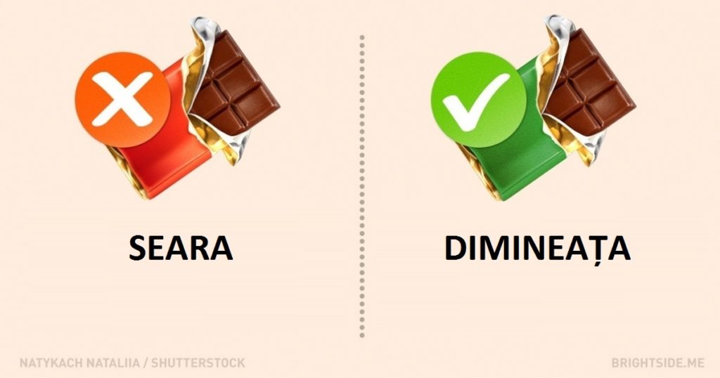 - Nu o consuma pe post de gustare – mai mult de 25g și corpul va transforma excesul de ciocolată în depozite de grăsime.