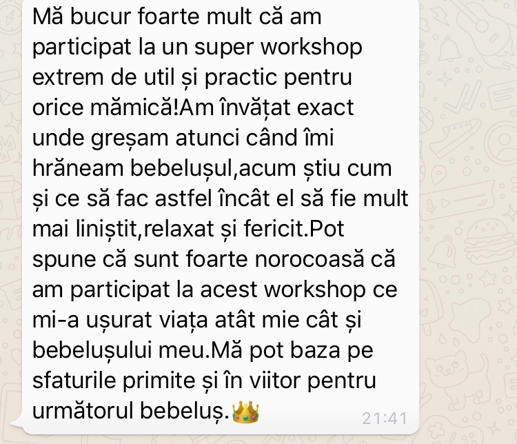 Ma bucur mult pentru succesul pe care il aveti si poate o sa reusiti sa ajungeti in cat mai multe orase pentru a invata si alte mamici aceste tehnici minunate 🤗