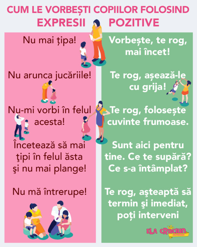 În loc să spui „Nu mai țipa!” spune-i „Vorbește, te rog, mai încet!”