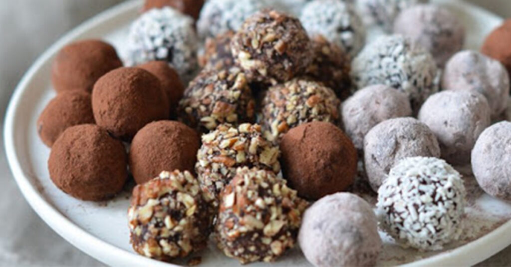 Trufele pot fi prietenul de nădejde când avem mese sănătoase.Ingrediente: o cană de migdale crude, 2 căni de curmale, 4 linguri de cacao, jumătate de lingură de unt de migdale, 2 linguri de ulei de cocos presat la rece. Se mixează migdalele în robotul de bucătărie, se adaugă și celelalte ingrediente. La final se formează trufele care se dau prin caco și fulgi de migdale sau de cocos.
