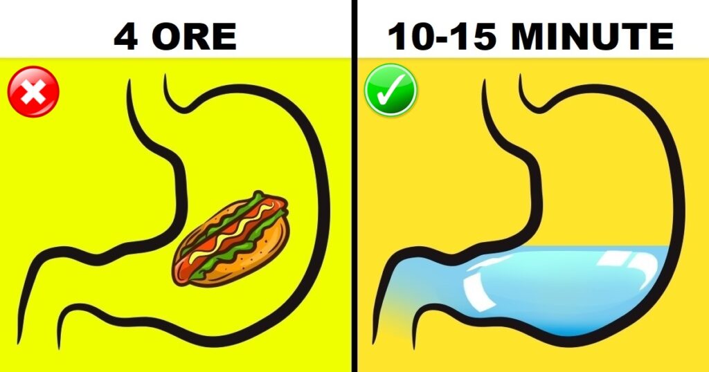 Apa nu rămâne în stomac pentru mult timp. Este nevoie de aproximativ 10 minute pentru ca stomacul să elimine 300 ml de apă. Deci, dacă bei în timp ce mănânci, apa nu îți aglomerează stomacul. Trece rapid prin mâncare mestecată, o înmoaie și părăsește stomacul.