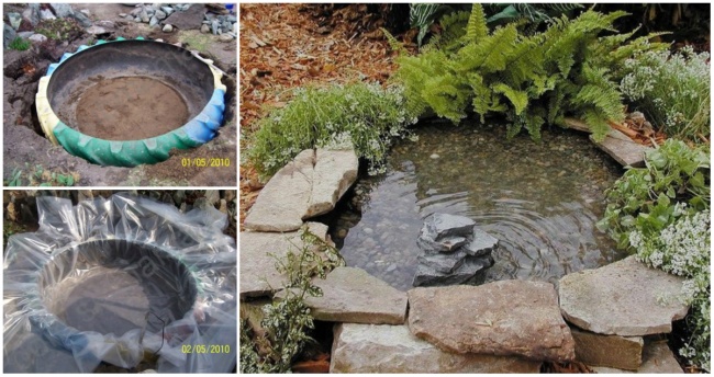 Știm, sună interesant și arată și mai interesant și ce să vezi! E și foarte ieftin, ușor și rapid de făcut. Aveți nevoie de o anvelopă. Săpați o gaură perfetă astfel încât anvelopa să ajungă la acelați nivel cu pământul. După ce ați terminat, introduceți anvelopa în gaură și acoperiți-o cu un nailon gros. Puneți peste el pietriș. Acoperiți cu apă. Pe margini folosiți pietre de diferite dimensiuni și iarbă pentru a arăta natural.