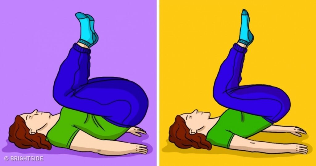 Stai pe spate și ridică picioarele în timp ce le ții drepte. Adu o gleznă peste cealaltă și fă o mișcare transversală aducând picioarele cât mai în diagonală.