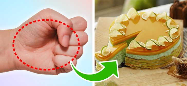 Prăjiturile ar trebui și ele limitate. Astfel, puteți folosi pumnul închis pentru a-l măsura – o porție din desertul preferat nu trebuie să fie mai mare decât dimensiunea pumnului închis.