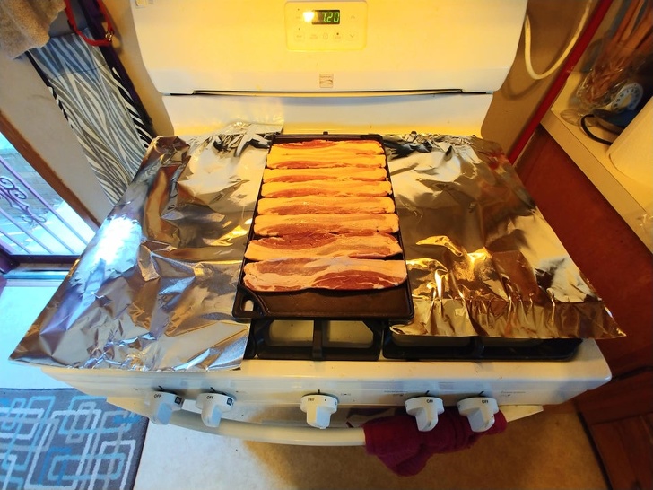 9. Protejează-ți aragazul și pereții din jur împrejur de acea stropire de grăsime de slănină urâtă.