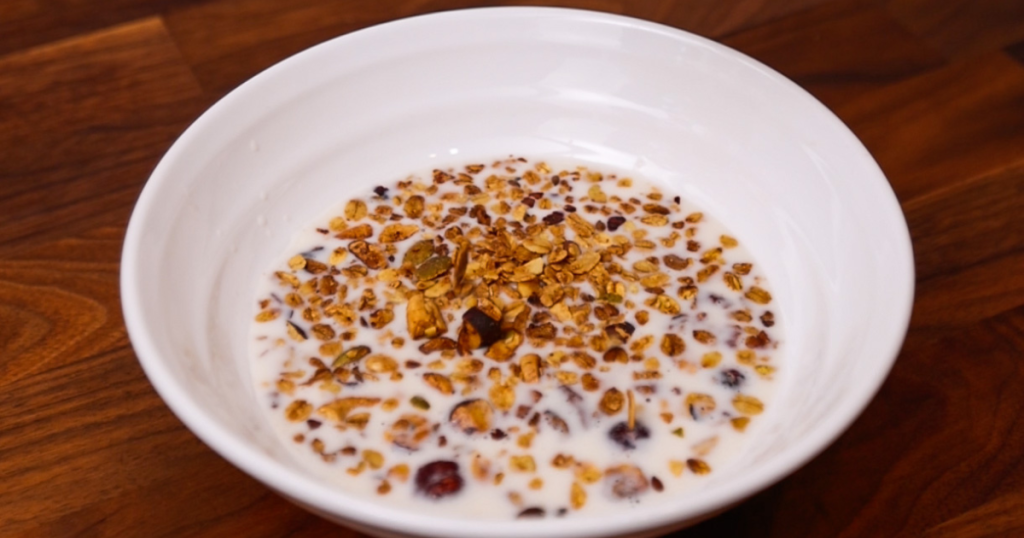 Granola este unul din alimentele pe care noi le consumăm des, atât datorită faptului că este extrem de delicioasă, dar și pentru că este o alternativă mult mai sănătoasă și mai bogată în fibre a cerealelor cumpărate din comerț. Se potrivește de minune cu laptele de migdale, una dintre băuturile noastre vegetale favorite.