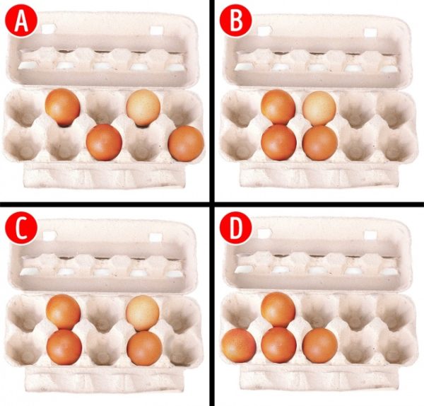 Imaginează-ți că ai 4 ouă rămase în cutie. Cum le vei aranja?